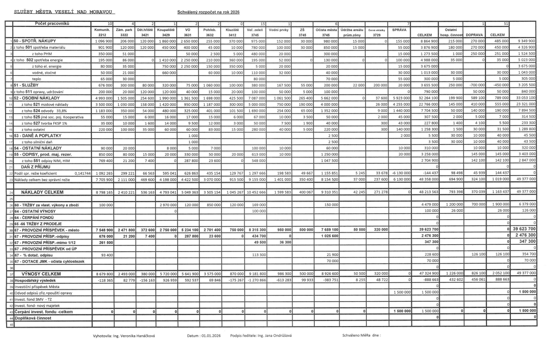 Schválený střednědobý výhled rozpočtu na rok 2026
